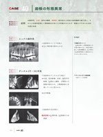 CASE 40歯根の形態異常90CASE 40<初診時のパノラマ所見>★に埋伏歯が認められる.<初診時のデンタルCT所見>★左図:冠状断像.右図:歯列平行断像.根尖と鼻腔,上顎洞との接触が認められ,上顎洞底部と交通していると思われる.<初診時の3D所見>臨 床診断⇒埋伏歯.疼痛のため抜歯▼読影のポイント 根尖部と上顎洞底部との交通が疑われる.何回か繰り返した歯肉腫脹は,の根尖と歯冠周囲から感染を生じたものと考えられる.★水平断像.▼デンタルCTの断層像 ⇒68ページを参照症例49歳男性.主訴:歯肉の腫脹.現病歴:数年前から何回か歯肉腫脹を繰り返し,そのつど近歯科医院にて薬物療法を受けたが改善がみられず,精査をすすめられ当科を紹介来院.エックス線所見デンタルCT・3D所見