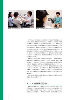 48図44 MFTの指導風景の一例。図45 ビデオ撮影は有用な記録として活用できる。 MFTでは、舌や口唇、のどの筋肉など、患者が普段意識したことのない筋肉に意識を集中させるため、気を散らすような音や視線から隔離した状態を作っておく必要があります。また、練習中に自分の口から出る音が、患者の羞恥心をかきたてる場合もあり、自分がとても特殊で、普通の人よりも劣っているといった誤解を生みだすこともあります。あくまでも、患者が精神的負担を感じずに、自然体で訓練が行えるような楽しい雰囲気作りを心がけるようにします。またレッスン中の音声を録音したり、筋肉の動きをビデオ撮影したりすることが多いため、ある程度の防音がなされているほうがより望ましいです。 部屋のレイアウトに関して特別な決まりはなく、説明用の資料と練習で使用する器具を置くためのテーブルと、指導者、患者、保護者の座るイスがあれば十分ですので、既存の設備を最大限に利用すべきです(図44)。口腔内および顔面写真撮影用のカメラ、シャーカステンなどがあればなおよいのですが、歯科診療用のものと共用してもよいと思います。さらに著者らは、患者の筋肉の動きをビデオ撮影し、有用な記録として活用しています。スペースと機材が許せば、ビデオ撮影ができる場所が確保できるとよりよいと思います(図45)。 なお、練習に使用する器具・設備および指導者の手指などの衛生管理は、基本的な要件です。4.いつ指導を行うか 著者らの診療室では、一週間のスケジュールのうち、MFTを行う日を決めています。歯科診療室内のスタッフである歯科衛生士がMFTの指導の任に就く場合、チェアーサイドアシスタントとのかけ持ちという形を取ると、集中力が分散され、指導の効果が上がり