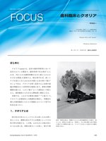 109歯科の新しい話題を紹介.はじめに クオリア(qualia)は,近年の脳科学研究において注目されている概念で,脳科学者である茂木1によれば,「私たちの主観的体験のなかに感じられるさまざまな質感」を意味する.例を挙げれば,赤いイチゴを見たときにわれわれが感じるあの赤い“感じ”のことである.クオリアを深く追及すると自我や意識の問題あるいは哲学的な領域に至り,著者の理解範囲を超える.しかし“感じ”という意味合いで捉えると,歯科臨床にもかかわる興味深い概念となる. 本稿では,これまでの筆者の報告2~6に基づいて,クオリアと自覚症状との関連性を検討し,本概念の導入が歯科臨床にもたらす意義などについて若干の私見を述べたい.1.クオリアとは 桜の花は日本人にとってひときわ思い入れの深い花といえる.満開の花の下で人は視覚によってその色や形を知覚する.この時,心のなかには桜の花にまつわる思い出,季節の移ろいへの思い,喜びや華図1 筆者自身は,奮闘する小さな蒸気機関車に力強さ,誇らしさ,健気さを感じる.同時に,白と黒が織り成す情景に静けさや郷愁を感じる.クオリアは各人に独自の主観的世界である.中村広一元 国立精神・神経センター武蔵病院歯科連絡先:〒207‐0002 東京都東大和市湖畔2‐1004‐150Dental clinic and “qualia”Hirokazu Nakamura歯科臨床とクオリアキーワード:クオリア,歯科心身医学the Quintessence. Vol.31 No.6/2012̶1279